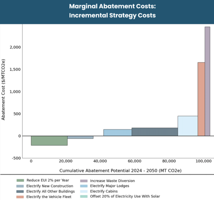 We develop detailed cost models to help for an additional layer of consideration. We analyze and review strategies, not only for their emissions’ impact, but also to understand the investment required to fully realize those reductions. Costs are further broken out by capital cost, program costs, and can include social costs of GHG emissions and co-pollutants.